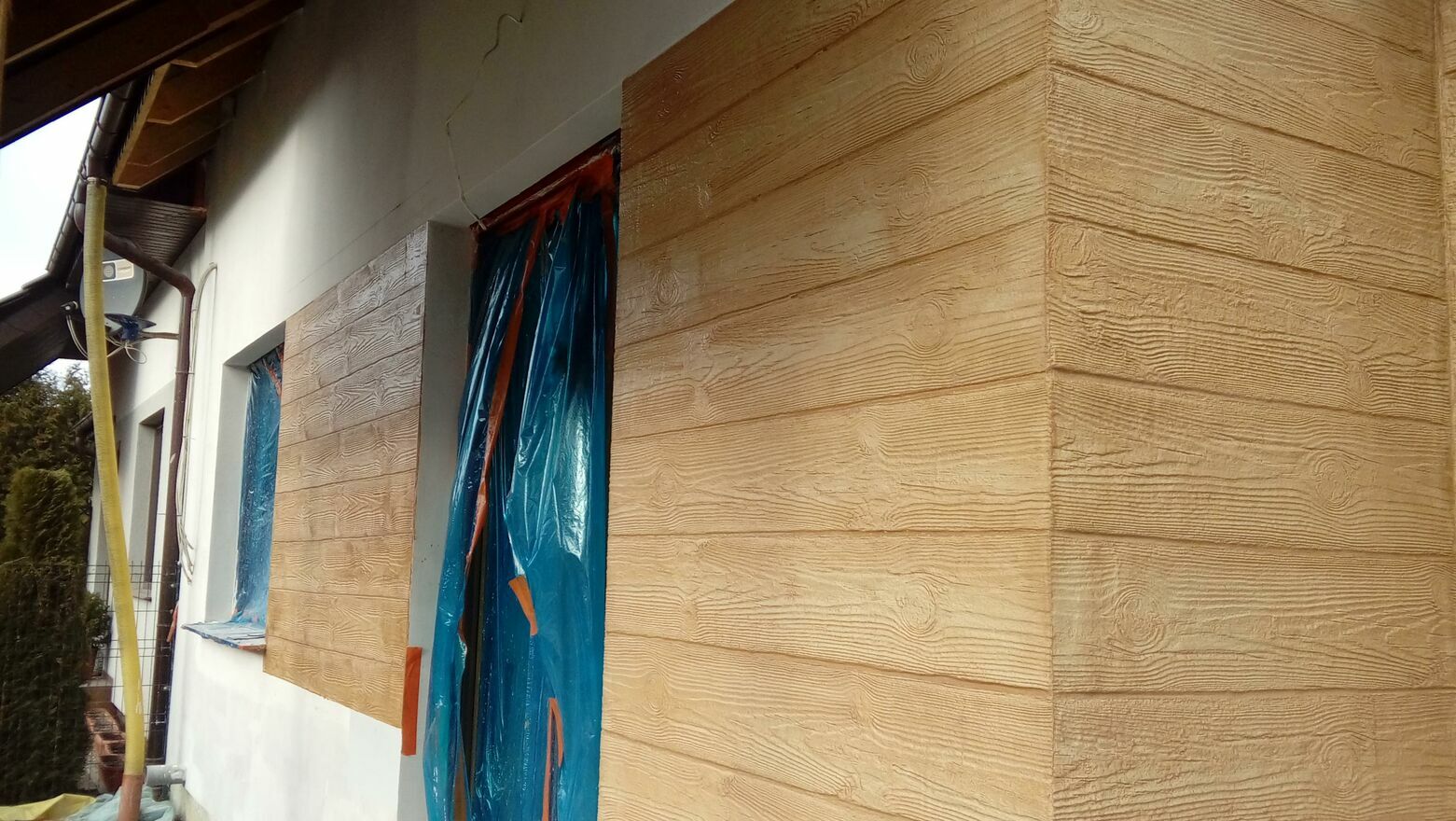 -Nałożenie tynku, Natryskowe nakładanie tynku, malowanie elewacji